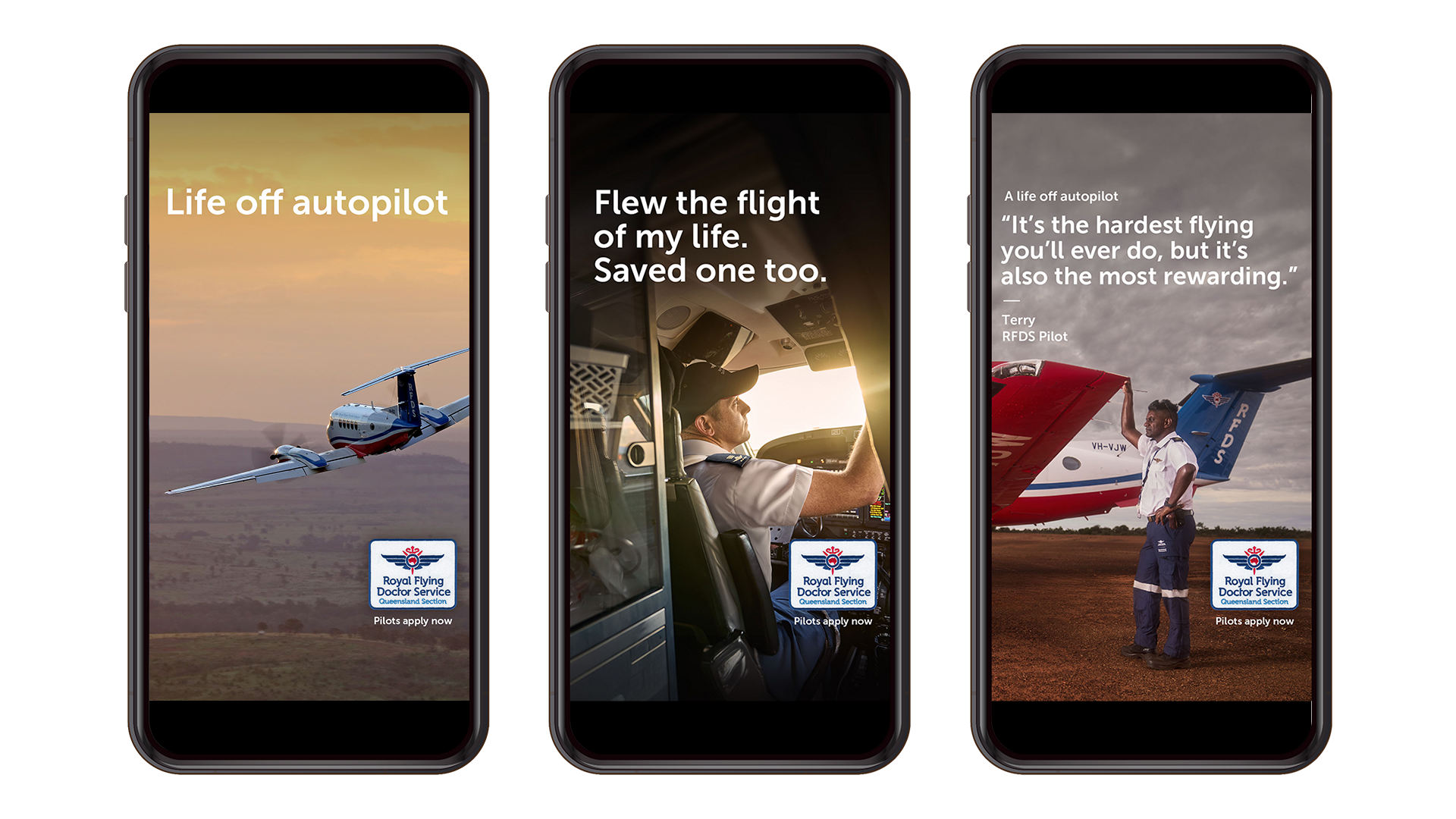 This is a recruitment campaign looking to capture the attention of pilots, encourage them to take back control of their lives and live life off autopilot with the RFDS.