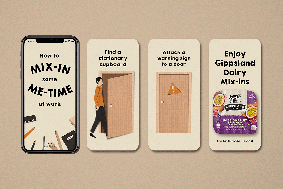 Through a series of social posts we explore all the possible lengths people could go to in order to find some me-time and enjoy a delicious tub of everyone’s favourite yoghurt: Gippsland Dairy yoghurt.
