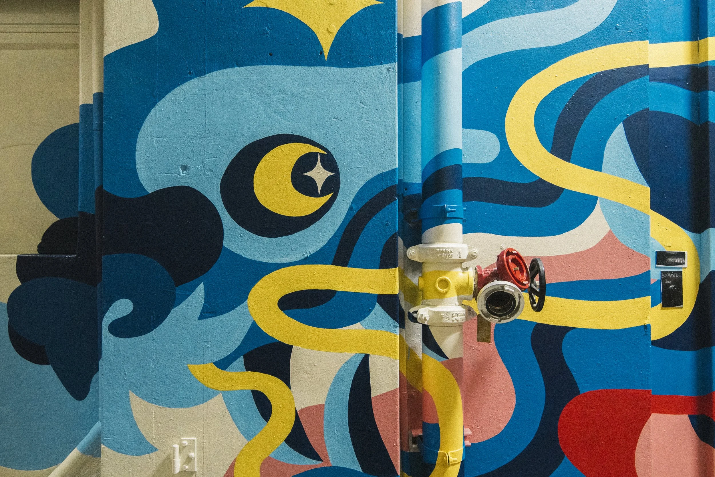 I had the pleasure of working with the dream team at Mosaic Music & Sound to design and install a mural for their small corner of the infamous Hibernian house. The brief? Just to brighten up and bring more life into the space.